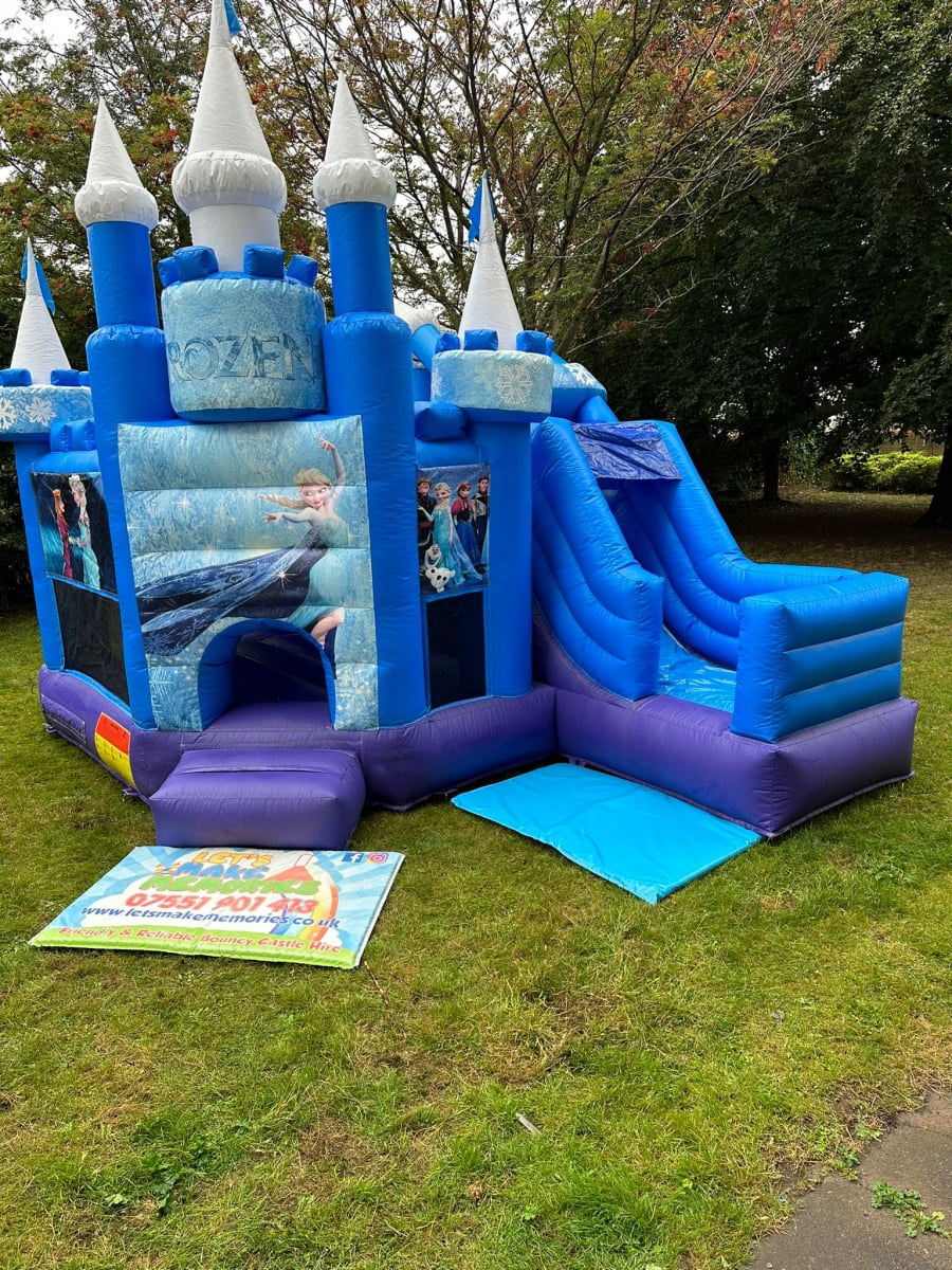 Bring the magic of Arendelle to your celebration with our Frozen Magical Kingdom Bouncy Castle with Slide!
