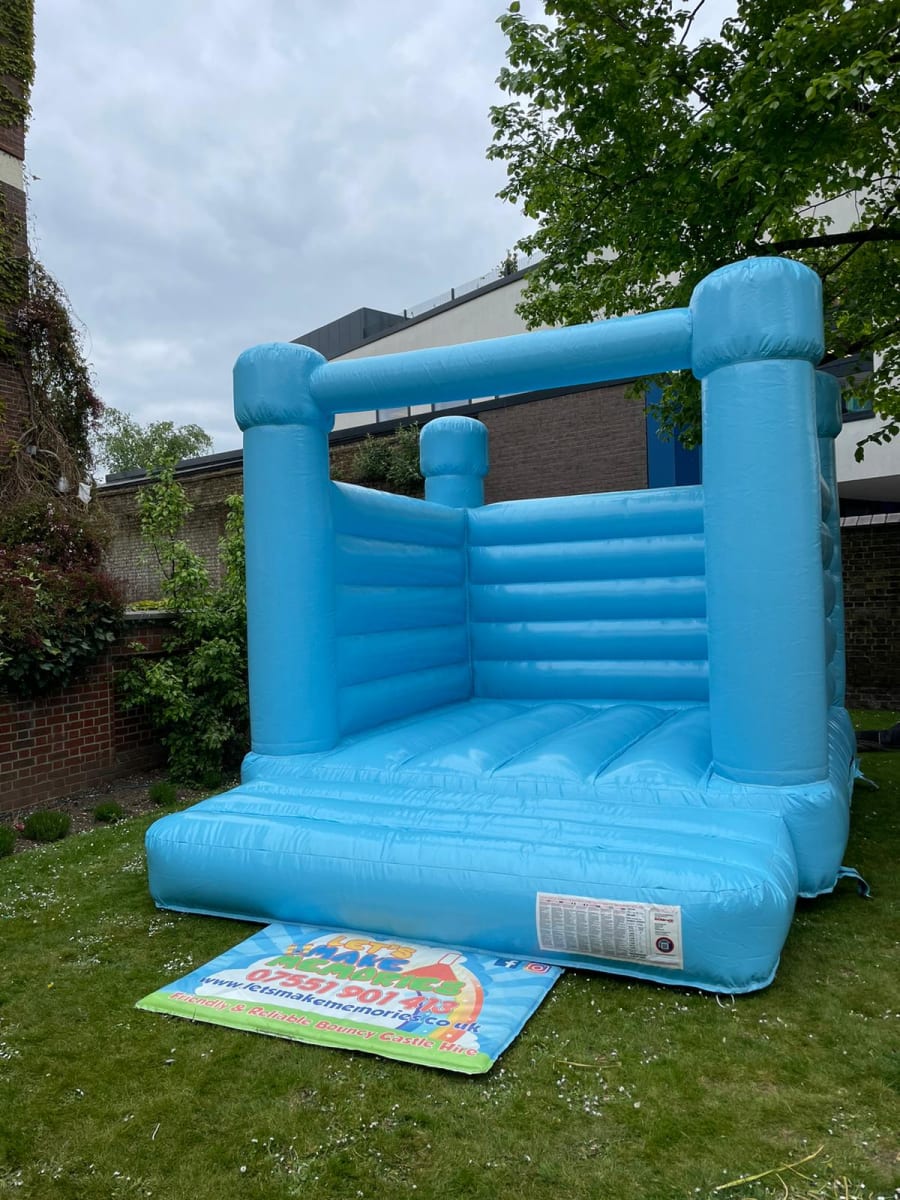 Blue Pastel Heaven Bouncy Castle Make your celebration unforgettable with our stunning Blue Pastel Heaven Bouncy Castle. Elegant, stylish, and perfect for creating those picture-perfect memories, this inflatable adds a touch of class to weddings, christenings, birthdays, and any special occasion. It truly delivers the wow factor! ⸻ Size & Space Requirements Length: 15ft Width: 12ft Height: 10.8ft ➡️ Please ensure at least 2ft of clearance around the inflatable for safe installation. ⸻ Suitable For ✔ Indoor and outdoor use (If hiring for indoor use, please ensure your venue ceiling height is suitable.) ⸻ What’s Included • Safety Mat • Blower • Sandbags or Pegs (depending on surface) • PAT Tested Extension Cable Everything is provided for a safe and secure setup. ⸻ Delivery Areas We are based in West London and proudly cover all of London. If your area isn’t listed or you’re unsure, please get in touch — we’re always happy to help. ⸻ Contact Us 📧 info@letsmakememories.co.uk 📞 07551 901 413