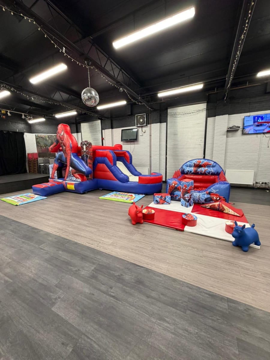 This fantastic all-in-one package combines a Spider-Man bouncy castle, Spider-Man ball pit, and Spider-Man soft play, along with a 10-piece soft play set, creating the perfect environment for jumping, climbing, crawling, and imaginative play.